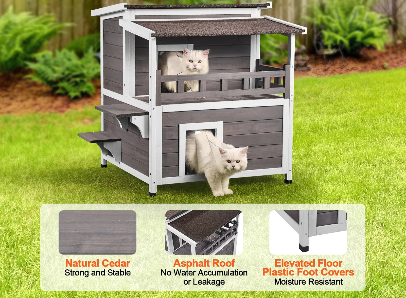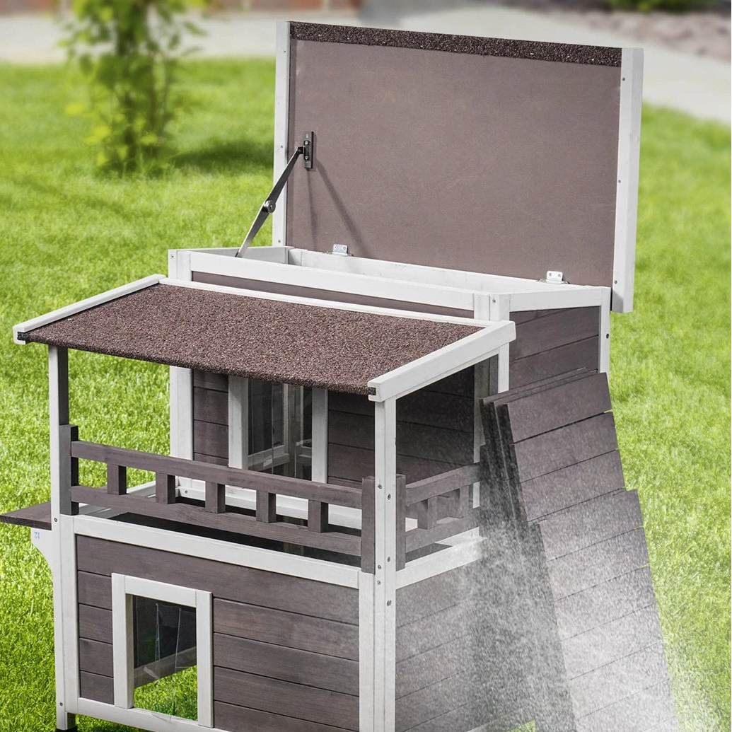 Cabane Extérieur Hiver Chat - 2 Étages Cèdre - Toit Asphalte Imperméable
