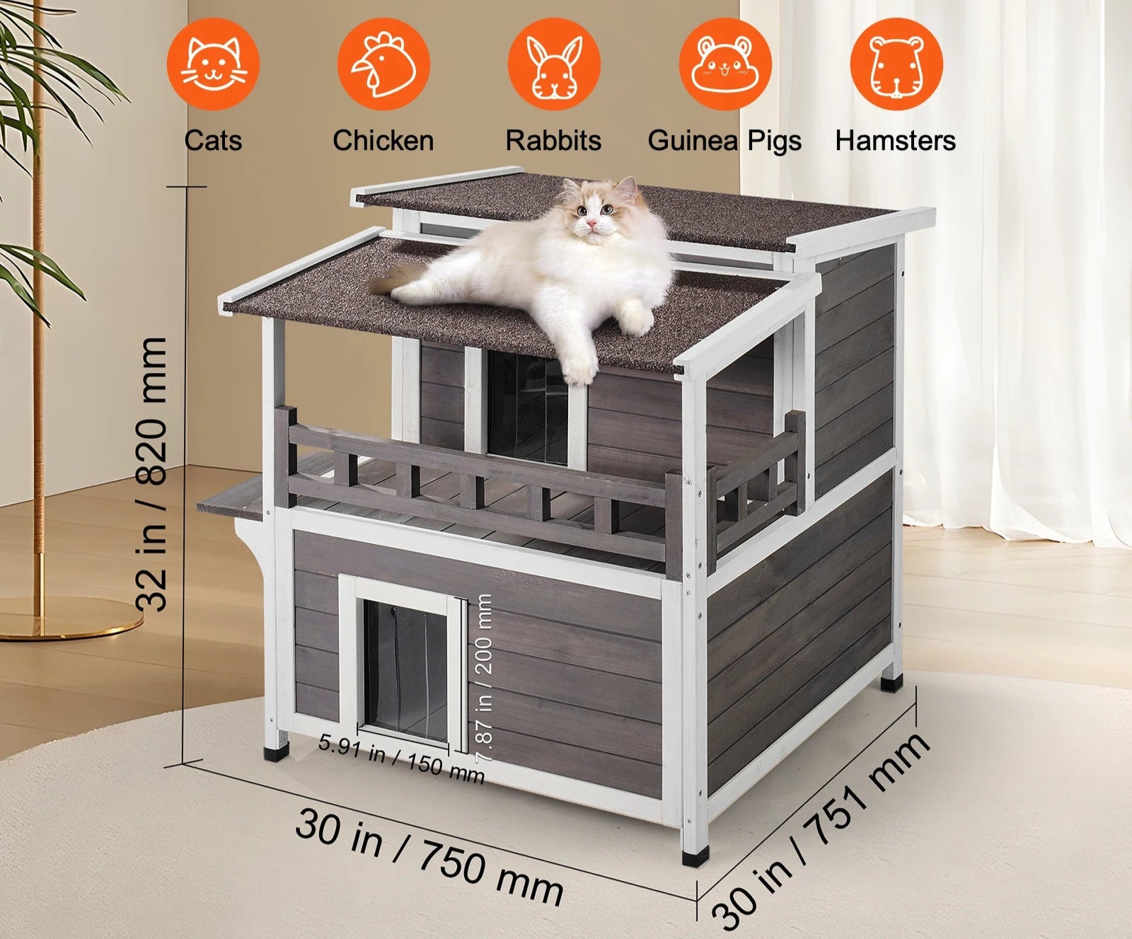 Cette cabane 2 étages en bois de cèdre offre une protection toutes saisons pour votre chat. Avec son toit asphalte imperméable et ses rideaux PVC épais, elle résiste aux intempéries tout en maintenant un espace sec et confortable.